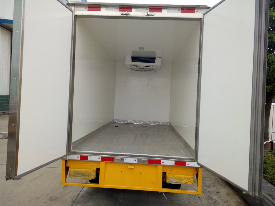 冷藏車廂體:采用國標(biāo)A級聚氨酯保溫材料,厚度為8厘米,廂體內(nèi)外采用玻璃鋼材質(zhì)全包裹。不銹鋼鎖件。包角、包邊鋁合金型材。底盤采用高強度花紋鋁板定制。可選裝肉鉤導(dǎo)軌,和底部通風(fēng)槽。