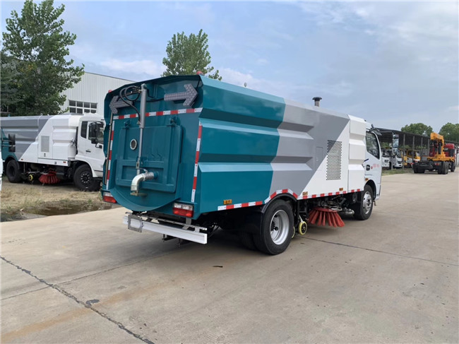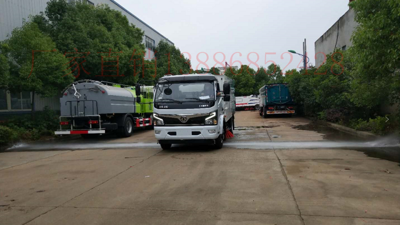 該洗掃車采用東風多利卡國六二類底盤改裝,加裝副發動機、風機、清水箱、垃圾箱、左右立掃、掃盤降塵系統、左右高壓側噴高、吸盤內置高壓主噴桿、氣動系統、液壓系統、專用裝置電控系統和副車架等改裝而成。