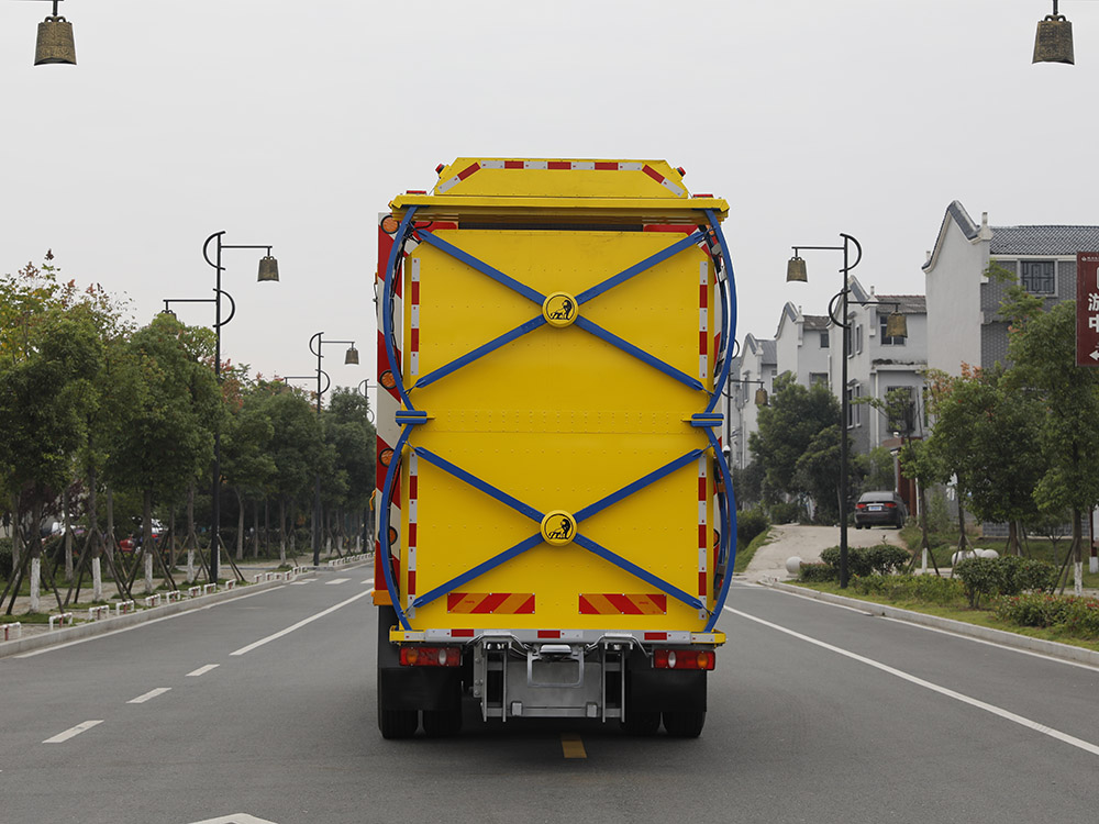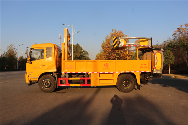 上裝配置:護箱:采用Q235國標邊3mm底板花紋板4mm厚,箱體后部防撞包采用美國進口T90型號,防撞緩沖吸能模塊主要由車載防撞緩沖墊和導向標志架組成,充當施工作業車輛后方的緩沖衛士。如若發生追尾事故,能夠在肇事車輛和前方施工作業區域之間構建一個緩沖區域,通過機具結構變形吸收撞擊的能量,最大限度地降低被保護人員及設備遭到碰撞的幾率。高性能液壓系統,可實現快速舉升和落下操作,方便設備運輸轉場,一鍵啟動功能,舉升和落下防撞裝置,當防撞裝置未完全落下到工作位置或舉升到垂直運輸位置時,會有自動警告音提示。