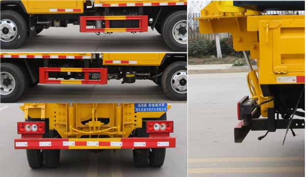 防撞緩沖車|高速碰撞車|被動防撞車|高速緩沖車|多利卡藍牌防撞車|藍牌雙排防撞車,該車專用裝置為:車載式緩撞裝置,主要用于移動施工、臨時性封閉車道或交通事故處理及搶險現場,降低城市道路施工、高速公路養護等作業中的安全問題.ABS系統控制器型號為CM4XL-4S/4M,ABS系統控制器生產企業為廣州瑞立科密汽車電子股份有限公司./后部防護材料均為:Q235碳鋼,側防護采用螺栓連接,后防護采用焊接連接,后部防護截面尺寸(mm):100×50,后部防護離地高度(mm):440.