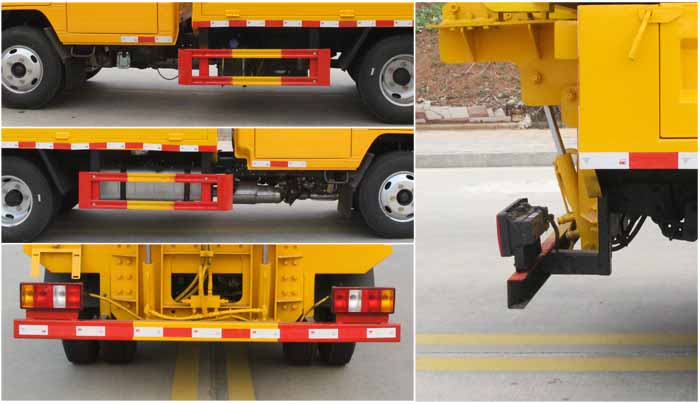 該車專用裝置為:車載式緩撞裝置,主要用于移動施工、臨時性封閉車道或交通事故處理及搶險現場,降低城市道路施工、高速公路養護等作業中的安全問題.ABS系統型號:APG3550500A,ABS系統生產廠家:浙江亞太機電股份有限公司./后部防護材料均為:Q235碳鋼,側防護采用螺栓連接,后防護采用焊接連接,后部防護截面尺寸(mm):100×50,后部防護離地高度(mm):420.